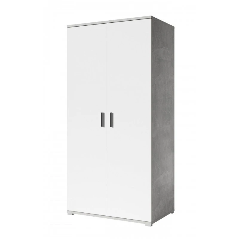 Armoire 2 portes de la collection Soma. Cette armoire blanche et grise dispose d’un espace penderie ainsi qu’un espace rangement de 4 Ă©tagères. Sobre et pratique, cette armoire s’intĂ©grera dans n’importe quel chambre enfant.