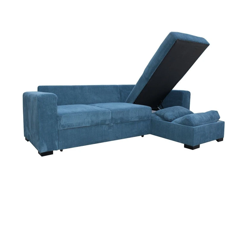 Canapé d’angle convertible en lit 2 personnes, couchage 145×200 cm.