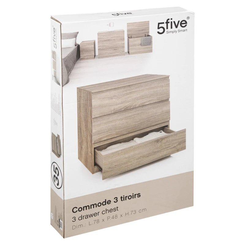 Un indispensable sobre et épuré, découvrez la commode 3 tiroirs 78 cm Dolo de la marque 5Five.