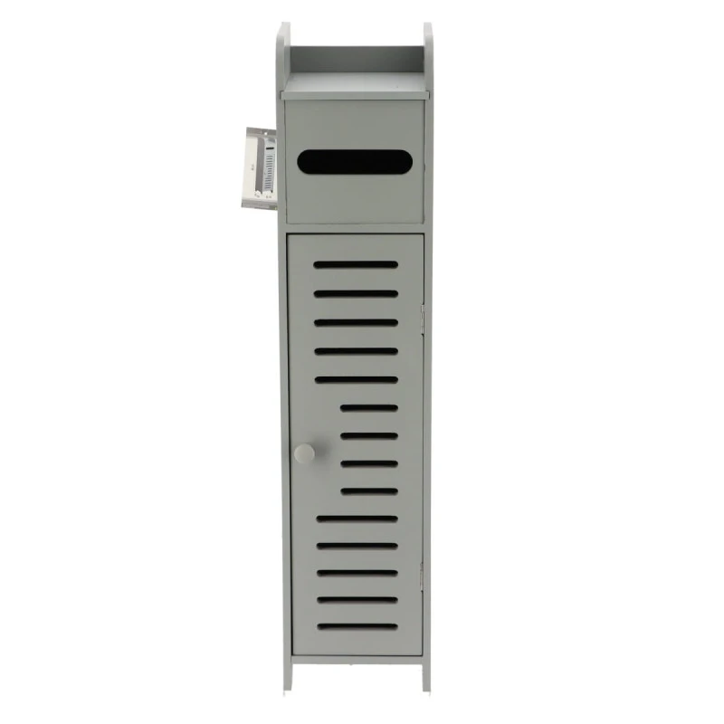 Optez pour un indispensable des WC : le meuble réserve + dérouleur 1 porte coloris gris.