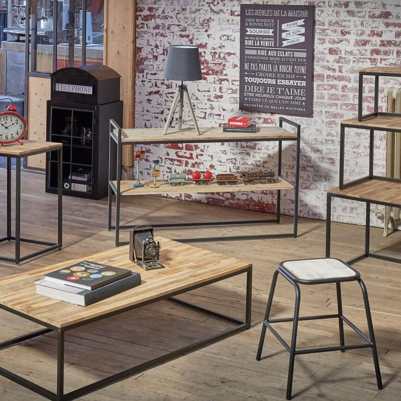 Optez pour cette table basse vintage pour donner un aspect rétro à votre salon ! L’association du coloris bois et noir mat : dernière tendance déco !